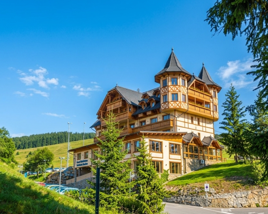 An important warming element of this themed room is an electric fireplace that evokes the warmth of the home even in the coldest season. The maximum use of space is complemented by a comfortable sofa, a double bed under the window with a view of the slopes of the Ski Center Bachledka.